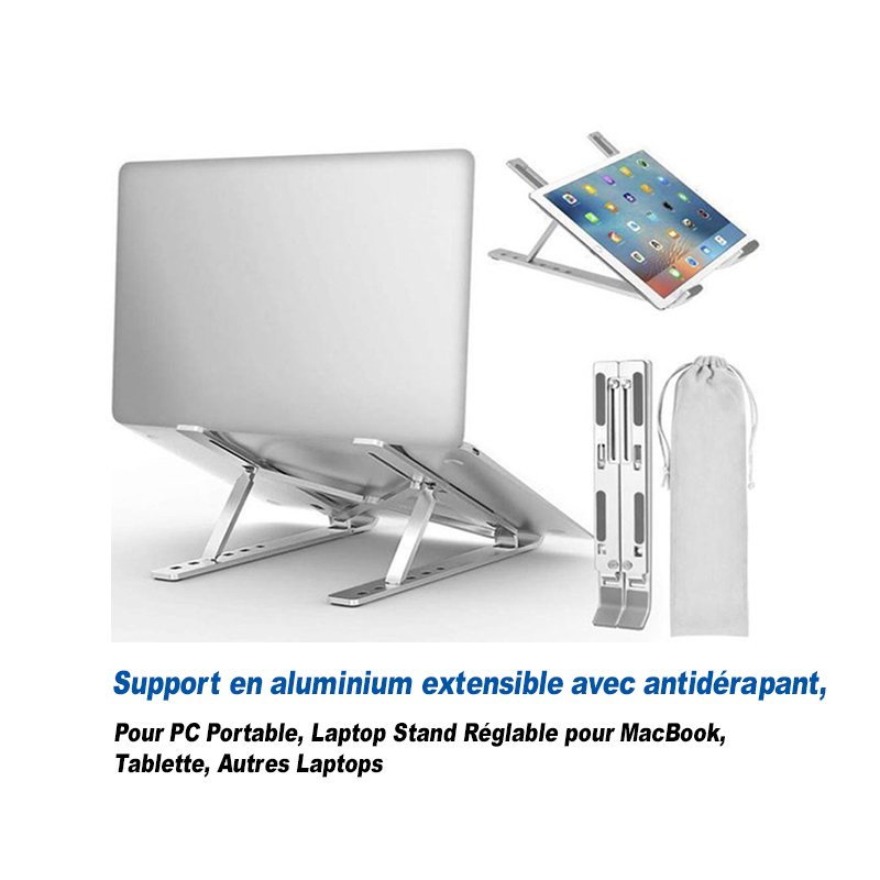 Notre support pour ordinateur portable est compatible avec tous les ordinateurs portables de 10 à 16 pouces, tels que MacBook Air/Pro, Google Pixelbook, Dell XPS, HP, ASUS, Lenovo ThinkPad, Acer, Chromebook, Microsoft Surface et iPad, etc. Construit avec une finition de précision en aluminium et une fabrication CNC exquise, notre support PC sera un compagnon parfait pour votre précieux appareil.